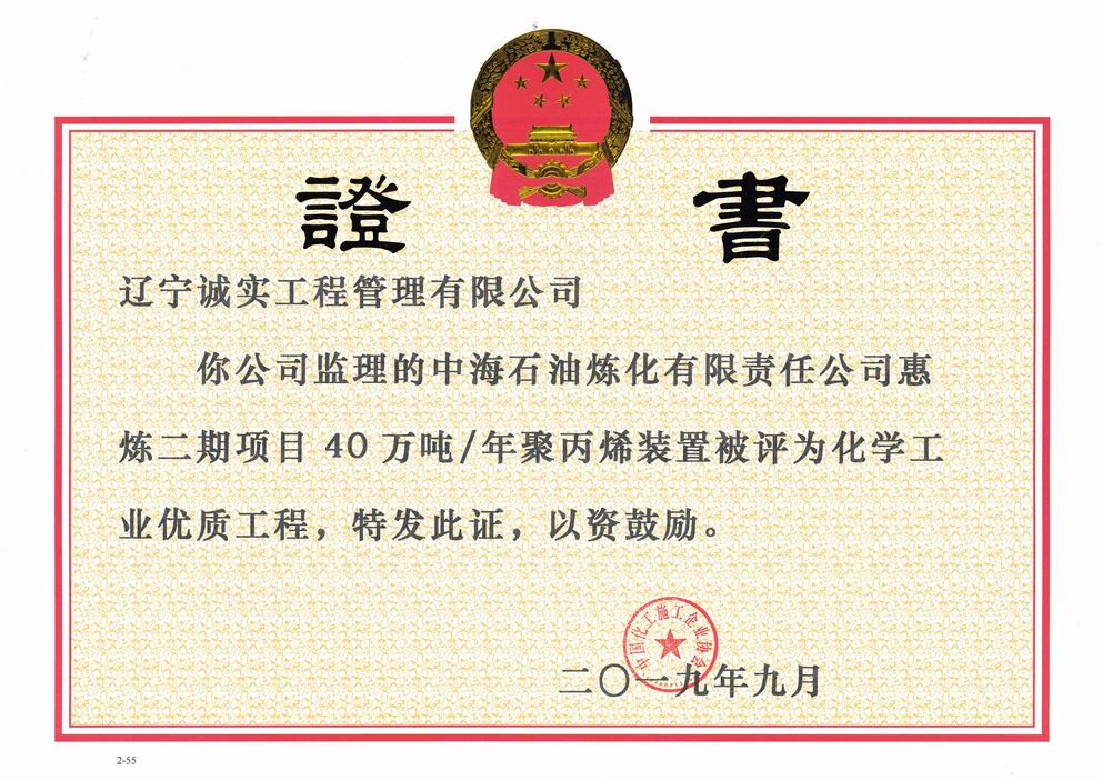 2019年化學工業優質獎(中海油惠煉...