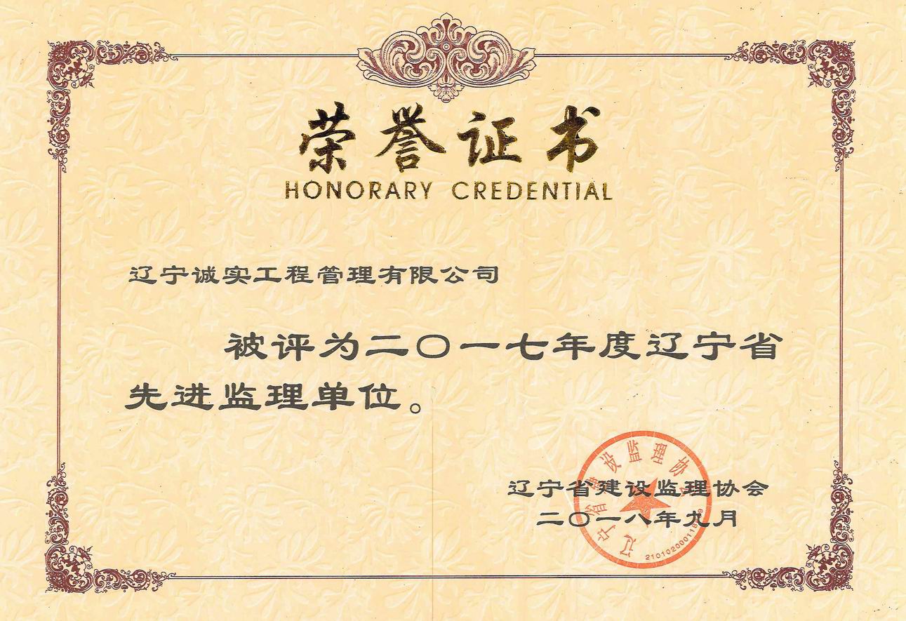2017年度遼寧省先進監理單位