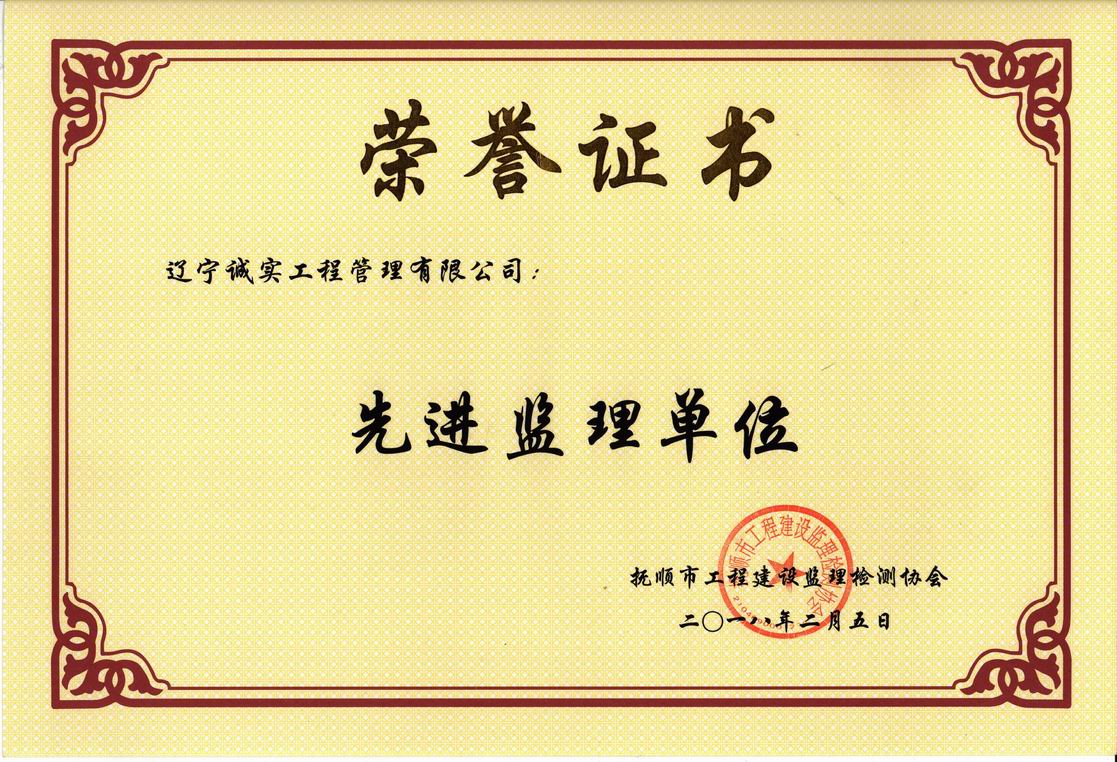 2018年撫順市先進(jìn)監(jiān)理單位