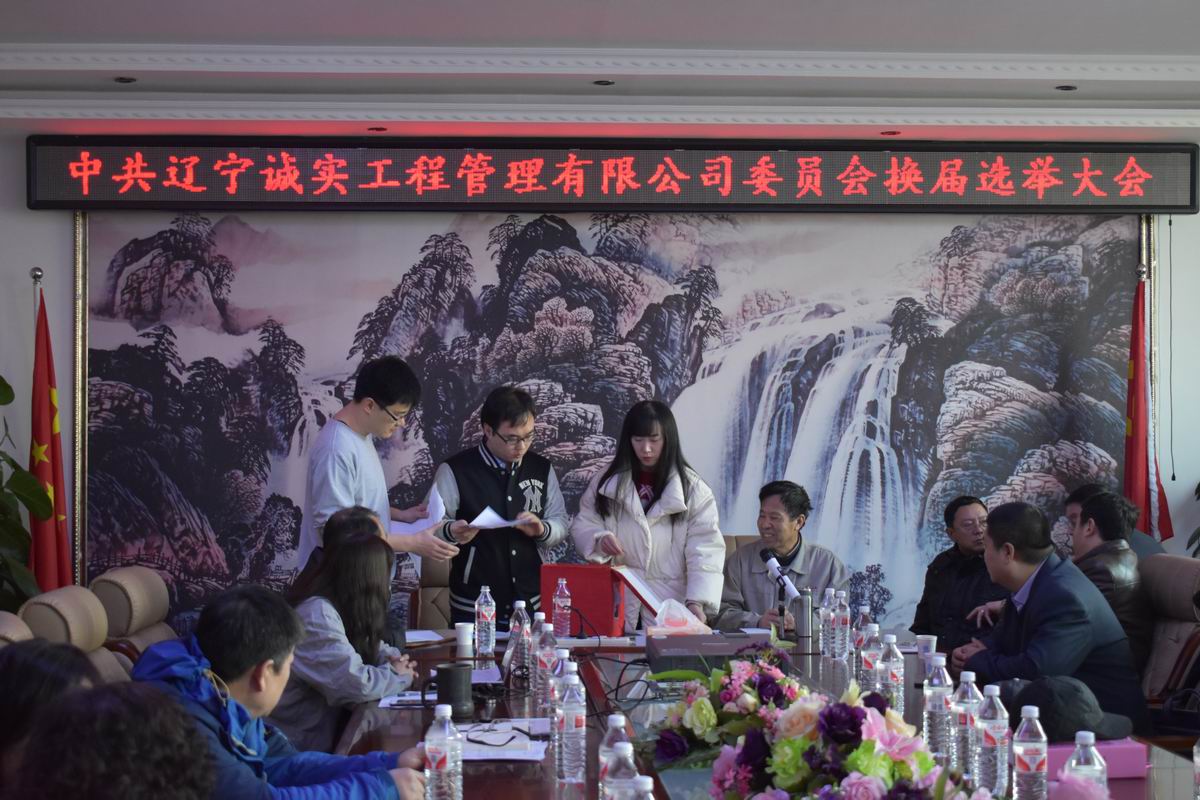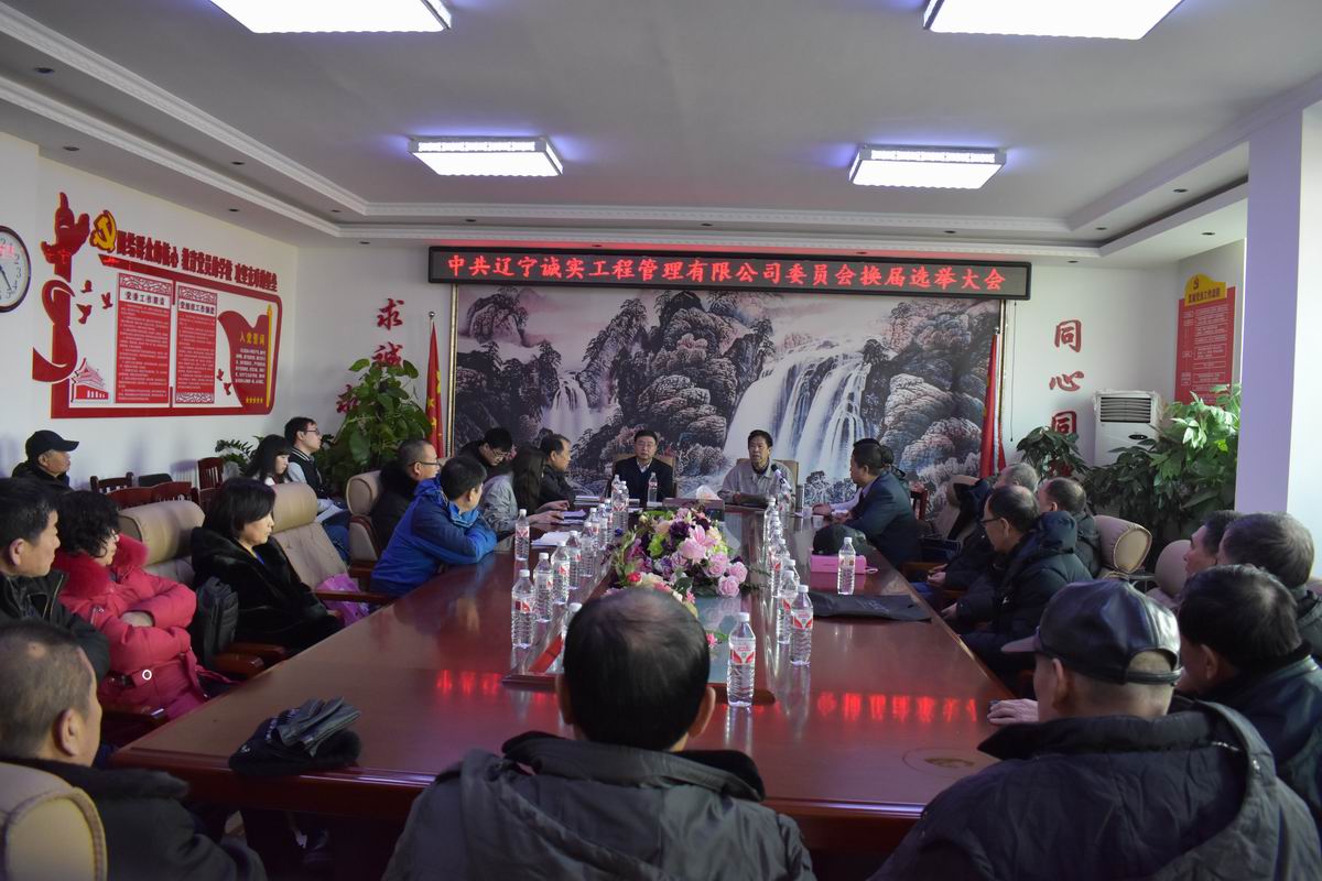 2018年2月7日上午十點,在公司一樓會議室召開了《中共遼寧誠實工程管理有限公司委員會換屆選舉大會》,28名黨員同志參加了此次大會,會議由黨委副書記馮玉琢主持,新撫區委組織部任部長及馮疆偉出席了此次會議。