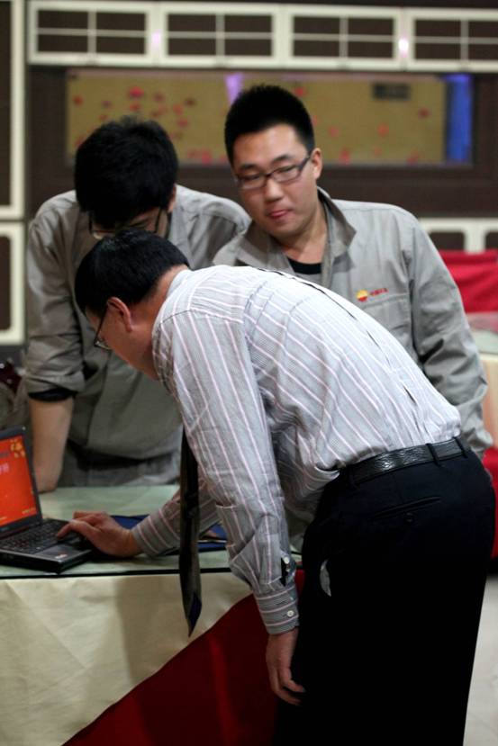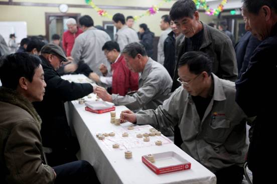 公司員工在進行象棋比賽
