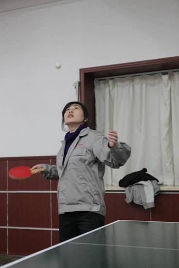 公司員工在進行乒乓球比賽