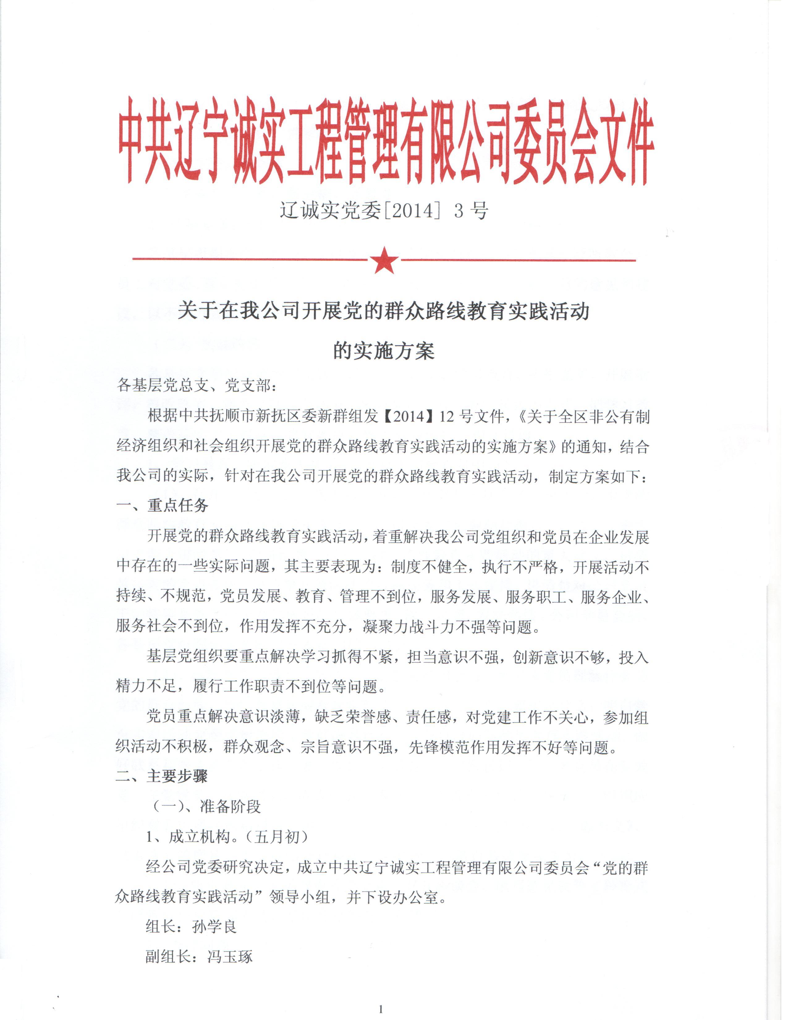關于在我公司開展黨的群眾路線教育實踐活動的實施方案