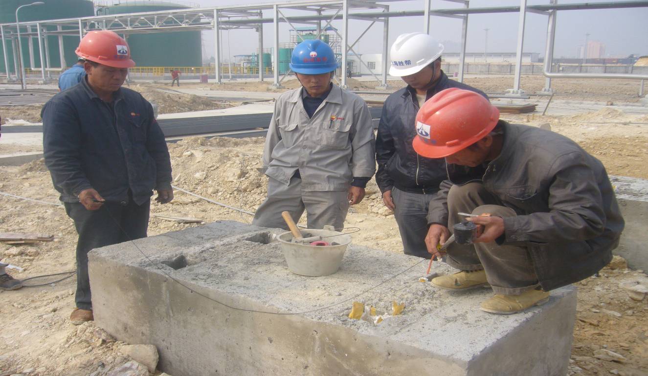 監(jiān)理、總包、施工單位現(xiàn)場進行泵基礎交接