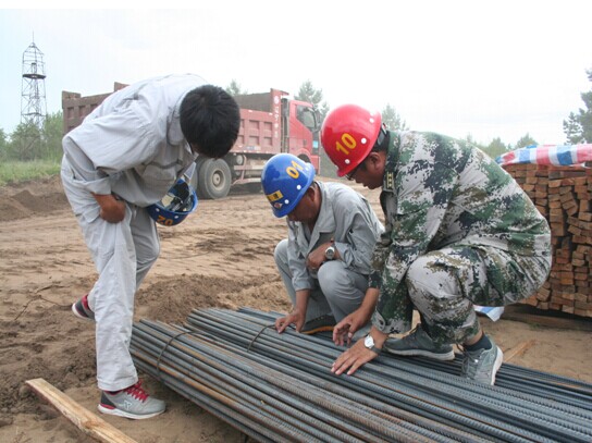 監理、業主認真檢查鋼筋材質、規格、型