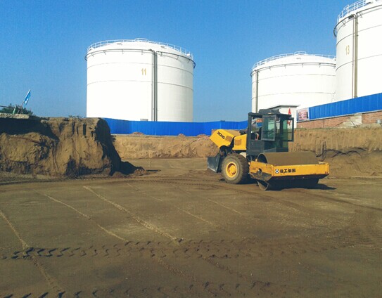 20噸壓路機在工作分層碾壓